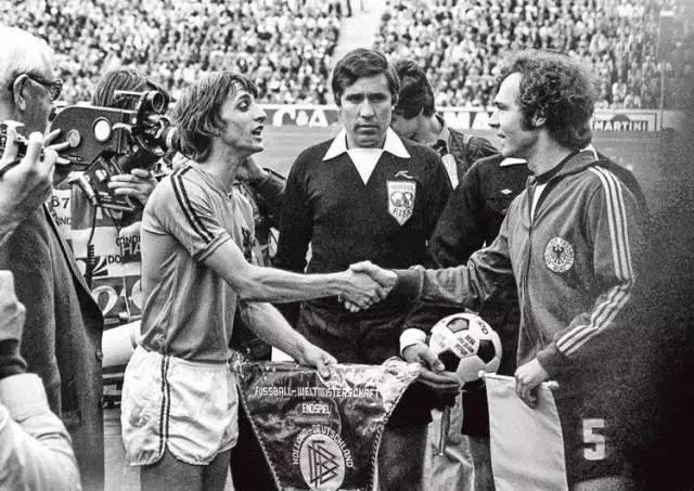 当然,相爱相杀不一定会如此表面。提到和贝肯鲍尔的友谊,克鲁伊夫的回答相当言简意赅:“谁让我和他都明白高处不胜寒呢?”在各类故事里,这两位的竞争剑拔弩张,1972年贝肯鲍尔封王欧洲拿下金球奖,将前一年的金球得主克鲁伊夫挤到了第三;随即荷兰人首度撞上贝肯鲍尔,便两回合5比2送德国人回家;可在更大的赛场,1974年世界杯决赛,德国人却用冷硬将克鲁伊夫拖入泥塘,西德2比1荷兰夺得世界杯。