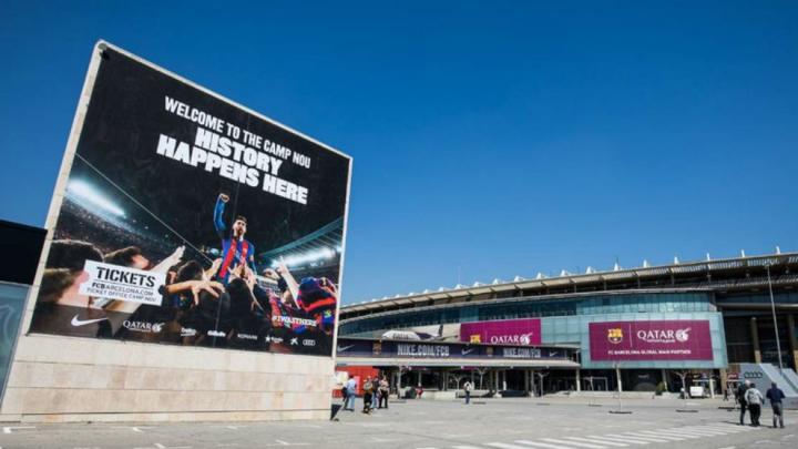 上周,巴塞罗那在主场逆转巴黎晋级欧冠八强。其中,一张梅西接受球迷膜拜的照片成为经典。如今,这张照片以巨幅海报的形式出现在了诺坎普球场旁边的一面墙上,并配以标语“欢迎来到诺坎普,历史在这里发生。”