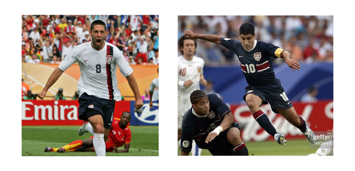 两国的球衣设计尽显传统气质。美国的主场球衣和客场球衣分别以两色粗条纹为核心。主场是纵向贯穿队徽的酒红深蓝条纹,客场则以横向越过腹部的白红条纹代之。体现了美国这个年轻国家的风采。