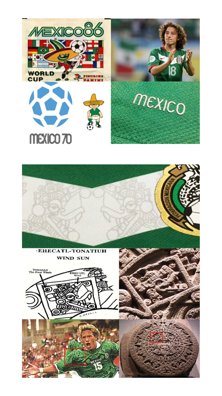 如果评选当年Nike球衣的设计冠军,Mr. X一定投给辣椒国墨西哥。这件球衣做工精致,细节丰富,即使在墨西哥所有球衣之中也是极上乘之作。胸口大V字型条带是球衣最主要的设计,内里装饰着从墨西哥第一国宝太阳石中截取的长嘴巴风神(Ehécatl )暗纹。