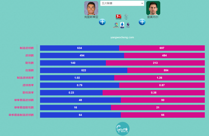 C罗vs梅西最新五大联赛数据对比:制造进球数:6...仰卧撑邱翼曦 @懂球帝2022-09-20 16:14C罗vs梅西最新五大联赛数据对比: 制造进球数:634-697 进球数:494-484 助攻数:140-213 出场数:622-554 制造进球效率:1.02-1.26 进球效率:0.79-0.87 助攻效率:0.23-0.38 单季最高进球数:48-50 单季最高助攻数:16-21 单季最高制造进球数:64-66 (数据来源:仰卧撑足球数据库)展开更多