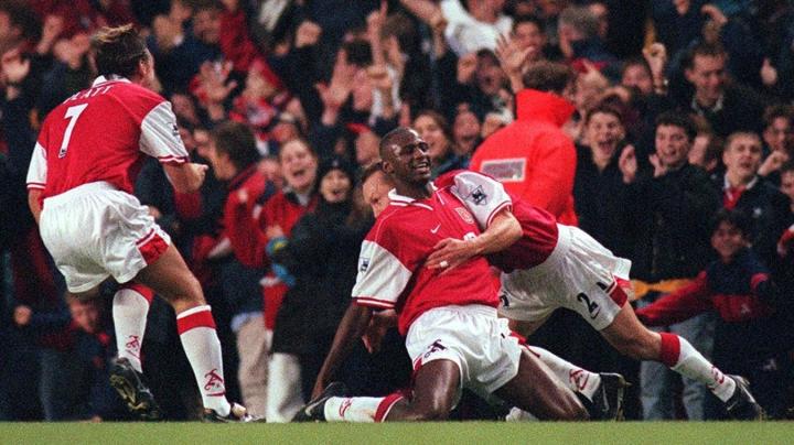 (图)阿森纳3-2曼联的比赛中维埃拉打进第二球后的庆祝