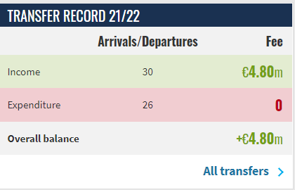 ① 俱乐部就3000多万欧的身价,联赛排名倒数。100万欧元的引援,再怎么操作,想把纸面实力提高到好于上个赛季,甚至争欧战水准,难上加难。