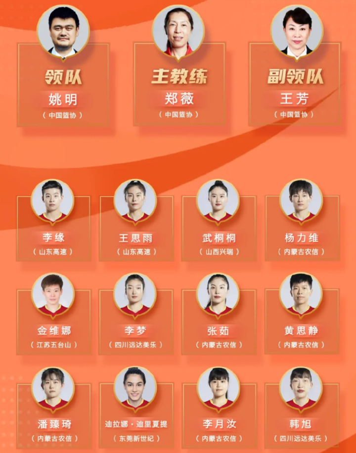 此外,这支中国女篮备受重视,她们的主教练是郑薇,领队是姚明,副领队是王芳,都是国内最高级别的篮球人了。显然,中国女篮的任务明确且艰巨,那就是拿到一块奖牌。上一届女篮世界杯,中国女篮已经打到了第6名,经过4年的磨合以及提升,希望她们能够实现突破。