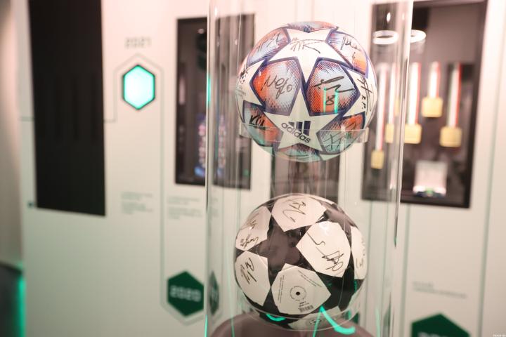 图:费伦茨瓦罗斯俱乐部博物馆中展示的球队曾经的欧冠比赛用球,图片来源:费伦茨瓦罗斯俱乐部官网