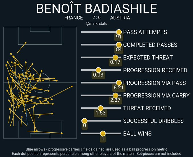 本场比赛,伯努瓦首发打满全场,他担任法国队的左中卫。