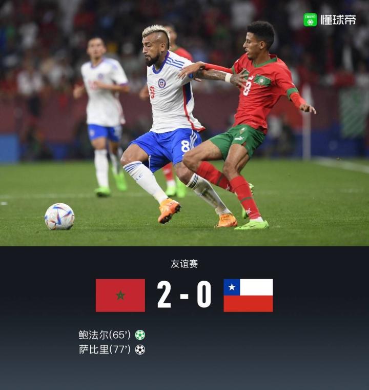 摩洛哥2-0智利,鲍法尔点射破门,萨比里远射建功