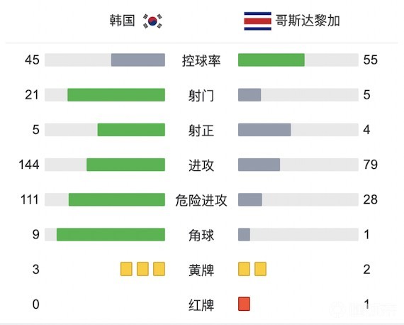 韩国2-2哥斯达黎加,门将禁区外手球染红送孙兴慜任意球绝平