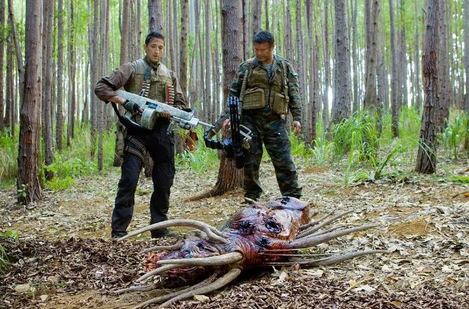 一道极强的亮光,将分处五大洲的8个人带到了一片未知所在。他们身背降落伞从高空坠落,继而落入一望无边的雨林。这群人中有车臣部队战士、以色列国防军、墨西哥特种部队成员、FBI通缉的要犯、日本黑帮稻川会头目以及一名与其他人格格不入的医生。他们彼此互不相识,也不知道为何被带到了这片陌生丛林。在罗伊斯(阿德连·布隆迪 Adrien Brody 饰)的带领下,众人开始朝制高点进发,最终发现他们竟然置身在一颗外星球中。与此同时,凶猛邪恶的猛兽接连向他们袭来,罗伊斯意识到,他们不过是一群外星生物选出的猎物,而这片雨林正是外星人的狩猎场。