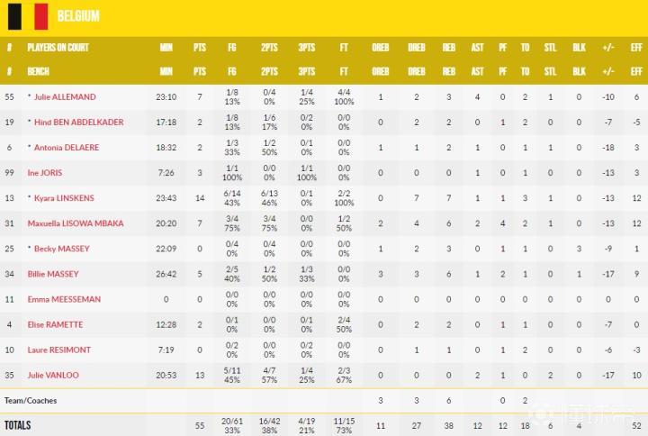比利时女篮:贝基-梅西、阿莱曼德、德莱尔、本-阿布德尔卡德尔、林斯肯斯