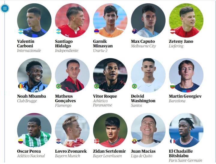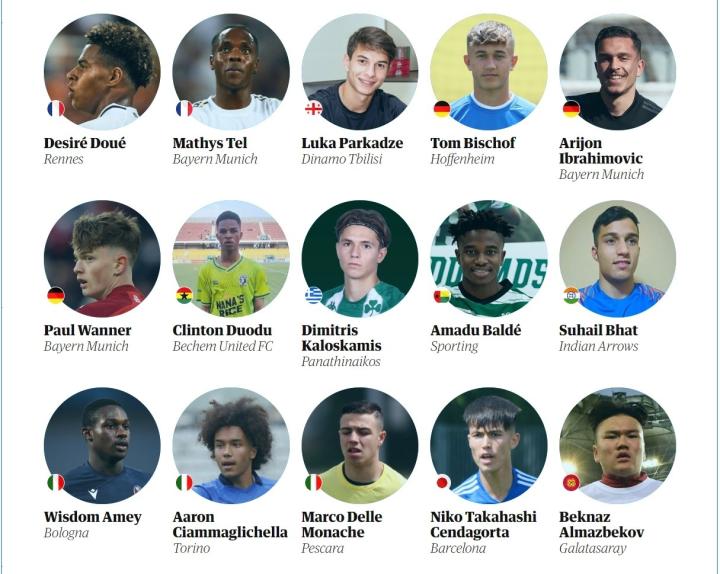 《卫报》近日评选了世界足坛60大2005年出生的青年才俊,他们只有17岁,但已经是冉冉升起的明日之星。拜仁小将万纳和特尔领衔。