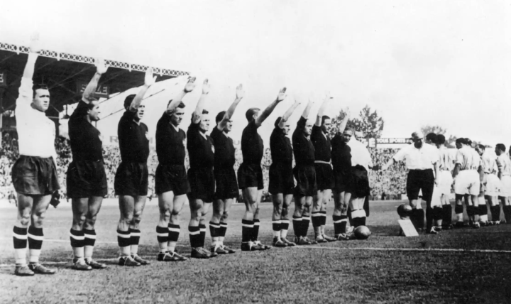 1938年的3月,英法绥靖政策下,德国不费一枪一炮,直接吞并奥地利。为了嘲讽“梦之队”奥地利队,德国纳粹在4月组织了一场与他们的热身赛,但此时的奥地利被改名为“奥斯特马克”,意为“东部边境”,随即奥地利9名优秀球员充实到德国队中,被强制要求参加世界杯。