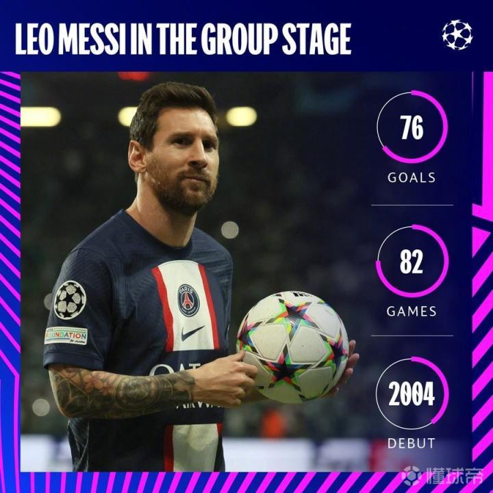 能否刷新纪录?梅西是欧冠小组赛进球最多的球员,82场进76球ETChalmers @懂球帝2022-10-04 21:52欧冠小组赛第三轮,巴黎将客战本菲卡,欧冠官方赛前晒图预热,梅西是欧冠小组赛进球最多的球员。截至目前,梅西欧冠生涯158次出场已打入126球,历史上仅次于打入140球的C罗。其中梅西在欧冠小组赛出场82次打入76球,是欧冠历史上小组赛进球最多的球员。而巴黎本轮的对手本菲卡是梅西欧冠生涯交手过但未取得进球的5支球队之一。展开更多