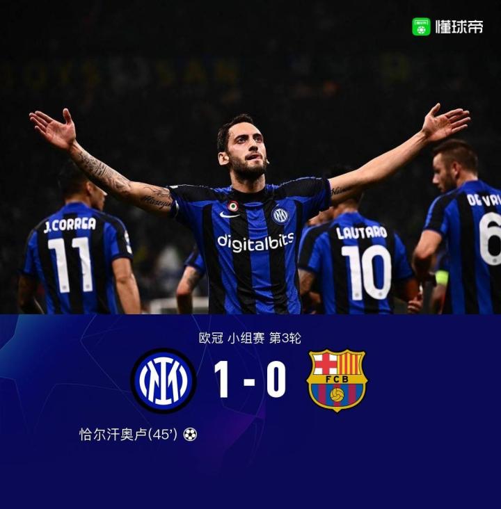 国米1-0巴萨,恰20贴地斩一剑封喉,邓弗里斯终场前争议手球