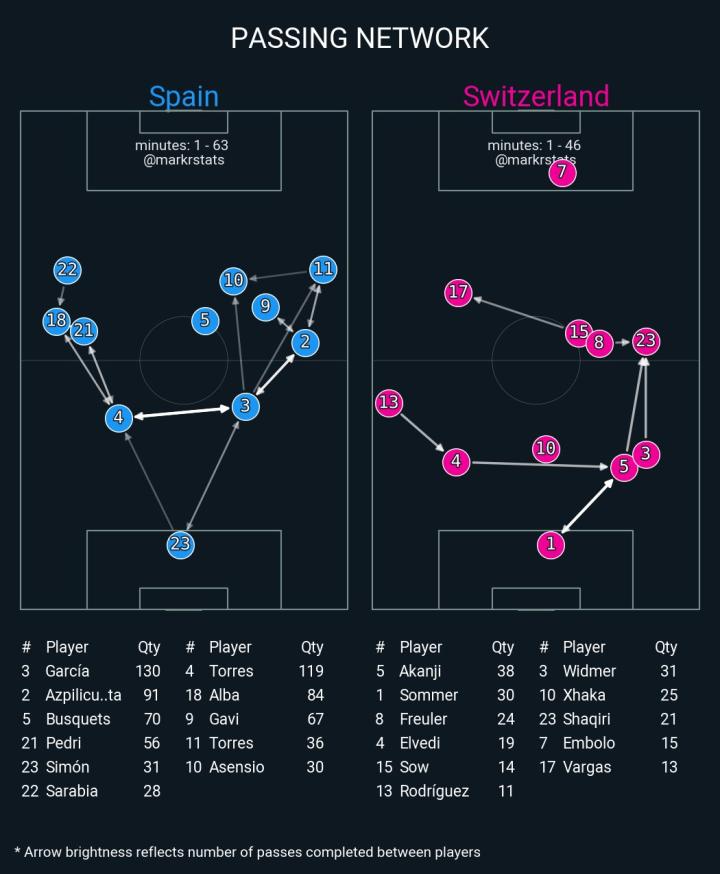 恩里克治下的西班牙,虽然锋线和后卫线的阵容都很一般,但是在中场拥有佩德里、布斯克茨、加维多名中场好手。西班牙在中场的控球能力还是不错,尤其是在中圈附近的进攻突然提速和转移,恩里克的球队做的非常好。