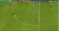 角球开出后,前点脚跟一蹭,传给了恩博洛,瑞士中锋们见捅了一脚,再次把比分超出。