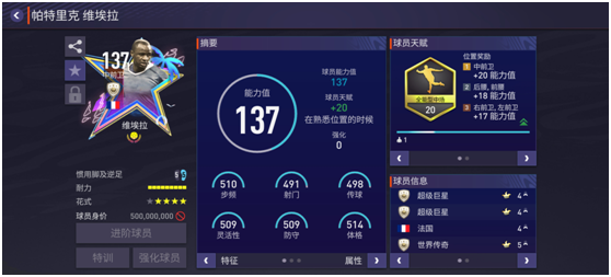 法国传奇维埃拉身高1.92米,体重82千克,是一名典型的大模型中前卫,在游戏中更是堪称中前卫位置的“一哥”,热门程度甚至超过古利特、巴拉克。游戏中,维埃拉近期推出的代表性球员卡就是这张夏日之星版本,位置给到中前卫,天赋配备了全能型中场,与后防统帅天赋不同,这项天赋的加成包含了攻守两端的多项关键数据,让维埃拉的实战表现更加全面。比赛中,维埃拉虽然看起来模型偏瘦,但是他的抗干扰能力以及对抗稳定性都是版本顶级。盘带方面,维埃拉的花式幅度大且动作衔接紧凑,有超高的过人效率。得分方面,维埃拉不仅对地面远射机会的把握非常稳定,而且还有一定的头球能力,不论是运动战的前插冲顶还是角球进攻的头球得分,维埃拉都有亮眼发挥。