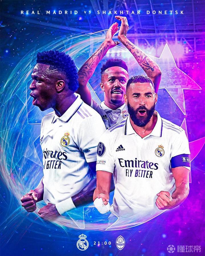 冲击欧冠开局3连胜!皇马官方发布战矿工海报:本泽马领衔ETChalmers @懂球帝2022-10-05 15:34欧冠小组赛第三轮,皇马将对阵顿涅茨克矿工,赛前,皇马官方发布比赛海报,本泽马领衔出镜。北京时间10月6日凌晨3:00,皇马将在主场对阵顿涅茨克矿工,本赛季欧冠前2轮,皇马先后击败凯尔特人和莱比锡,此役卫冕冠军将冲击开局三连胜。赛前,皇马官方发布比赛海报,本泽马、维尼修斯、米利唐出镜。展开更多