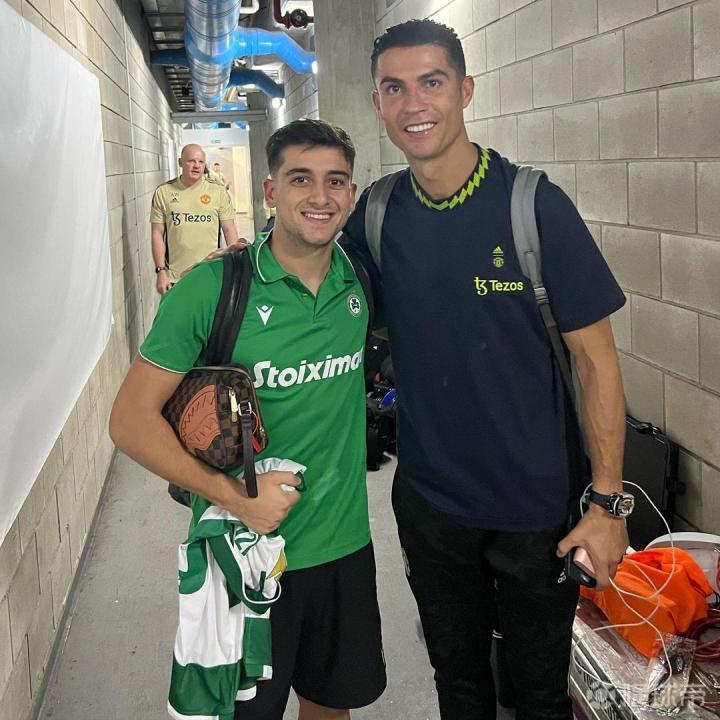 奥莫尼亚球员洛伊索晒与C罗合照并配文:The goat
