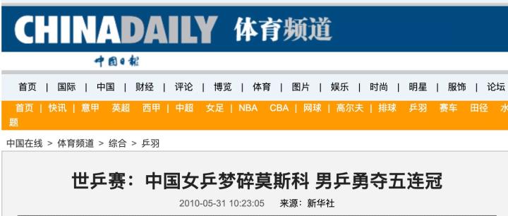然而正是这些流传最广的段子让大众对乒乓球形成了错误的认知,所有人都认为只要是乒乓球比赛国乒就必须夺冠、必须战胜每一个外协对手,4-1赢都不行,必须场场4-0——下一步是不是得要求每局都11-0了?但事实是,尽管中国已经统治乒坛20多年,大赛上也间或会出现一些翻车的情况。
