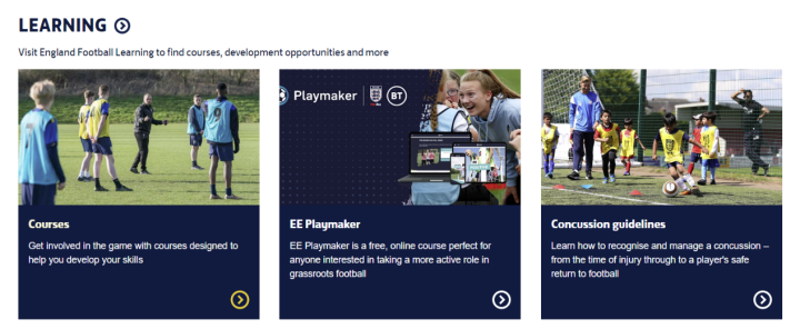 比如EE Playmaker,就是一个免费的基础足球教程:只需要一台电子设备、一个FA编号和4-5个小时,就可以学习到一些基础的入门足球训练、足球场上的急救知识和如何鼓励孩子更好地参与到足球这项运动等内容,帮助更多有兴趣在草根足球舞台上发挥积极作用的人迅速融入英格兰足球环境中。