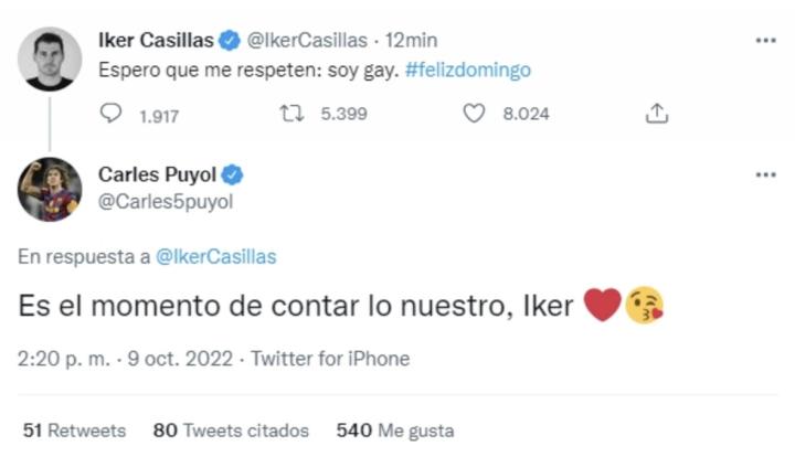 卡西利亚斯今日发文表示:“我希望你们尊重我:我是同性恋。”