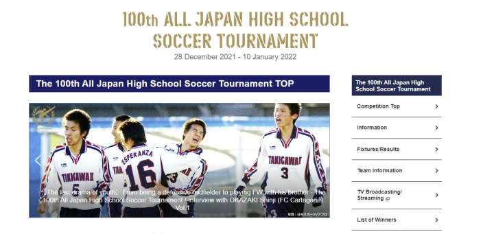 全国高等学校足球锦标赛由日本足球协会、全国高等学校体育联盟和以日本电视台为首的43家民营电视台联合主办,由帝人、丰田汽车、明治和富士施乐等日本著名企业赞助,面向全国高中生,是日本国内各俱乐部选拔未来之星的重要场所。大赛的优秀选手还会于每年4﹣5月以日本高中足球选手选拔代表团的名义赴欧洲参加青年足球大赛。(偶数年份参加瑞士贝林佐纳国际青年足球大赛、奇数年份则参加德国杜塞尔多夫国际青年足球大赛)。