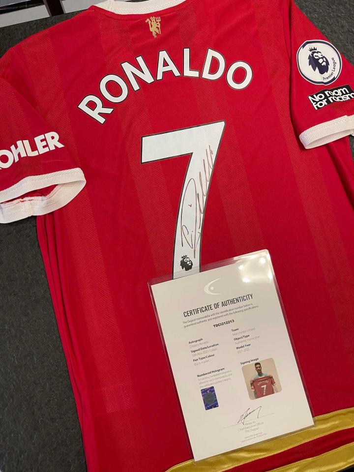 藏品6:C罗曼联球员版签名球衣 挂售价格8500元