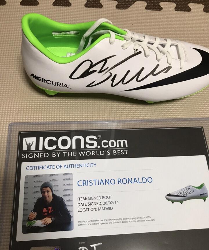 刺客9代白绿色的足球鞋,搭配着黑笔签字,附有着Icons官方的证书及镭射标,是不可多得的收藏展示佳品!
