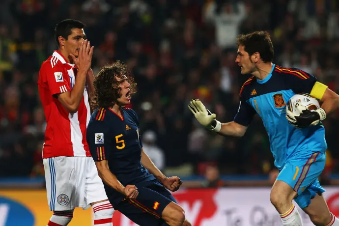 卡西利亚斯当时不仅作为皇马队长无可匹敌,在西班牙国家队,他也是当之无愧的精神领袖和第一守护神,2008年卡西利亚斯率领西班牙国家队横扫欧陆,赢得了队史第二座德劳内杯,并在同年的金球奖评选中位列第4。