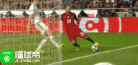 第13分钟,葡萄牙获得禁区前偏左位置任意球机会,C罗主罚直接打门,球打在人墙上后稍稍偏出左门柱。