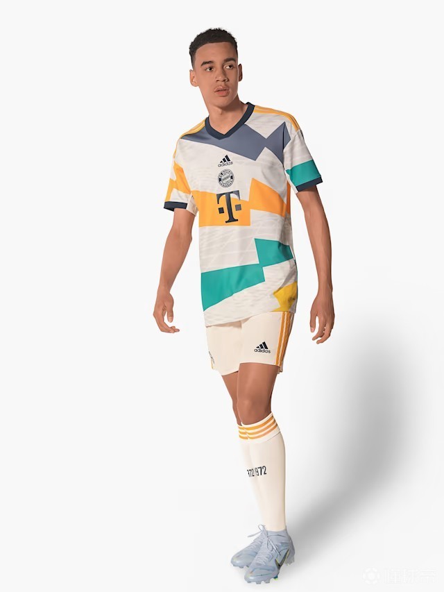 球衣主色调以白、黄、绿、灰为主,明快简洁,颇具设计感。球衣背面印有体育场落成年份1972和拜仁慕尼黑俱乐部字样。