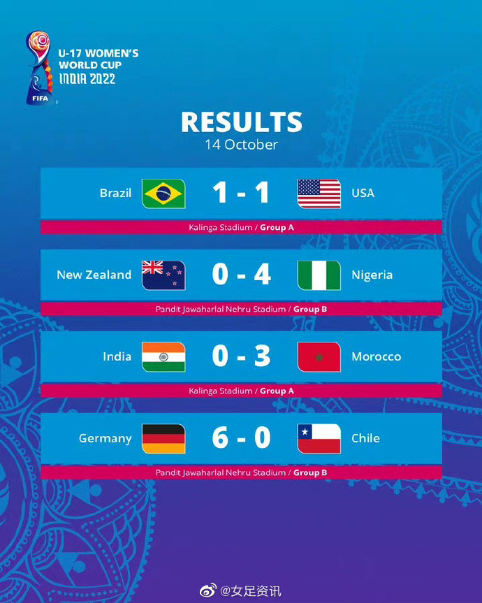 U17女足世界杯:巴西美国战平,德国大胜提前出线