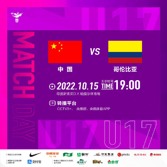 今天晚上19:00,中国女足U17将迎来小组赛的第二个对手哥伦比亚队,一起为年轻的女足姑娘们加油助威!