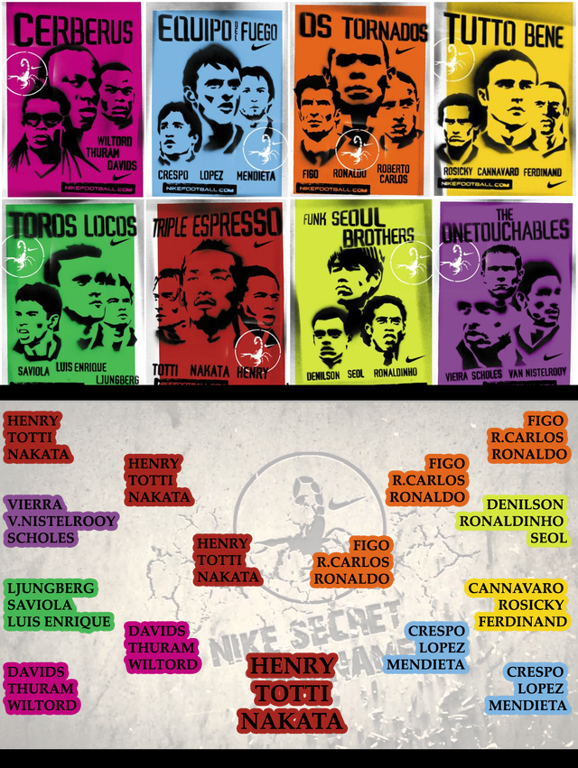 如果你从来没有看过这个广告,那么让我为你介绍一下——埃里克-坎通纳邀请了8支由职业球员组成的球队来到一个地下室,并制定了比赛的规则:每支球队由3名球员组成,首先进球的球队将获胜。参赛阵容异常豪华,包括罗纳尔多、菲戈、亨利、托蒂、卡洛斯、罗纳尔迪尼奥、克雷斯波、范尼、费迪南德、永贝里、戴维斯、克劳迪奥-洛佩斯、维埃拉、门迭塔、中田英寿等球星悉数上阵。