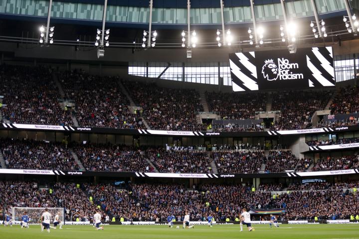 本赛季的英超联赛不需要每场比赛前都采用单膝跪地的方式来表达反种族歧视的立场了,但是在几个指定的轮次还是需要有这样的小仪式,比如这两周。