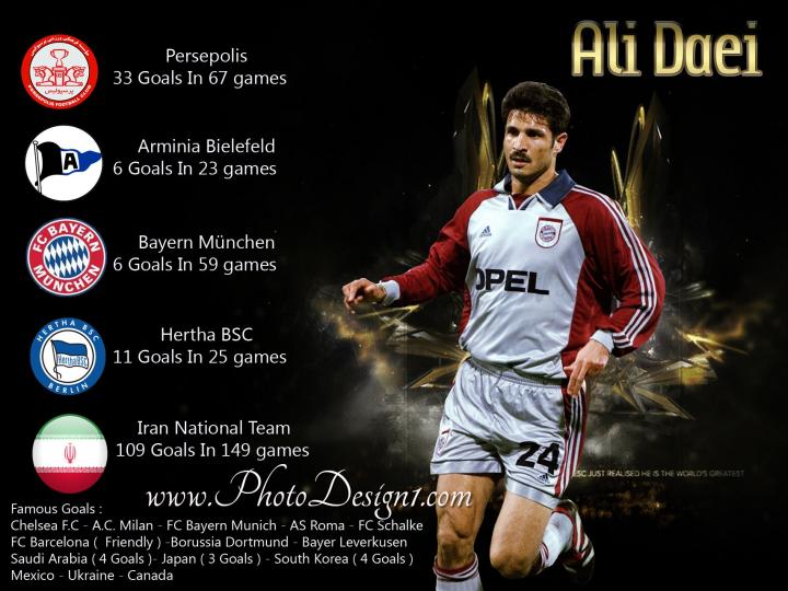 1.阿里-代伊,伊朗(149场109球)