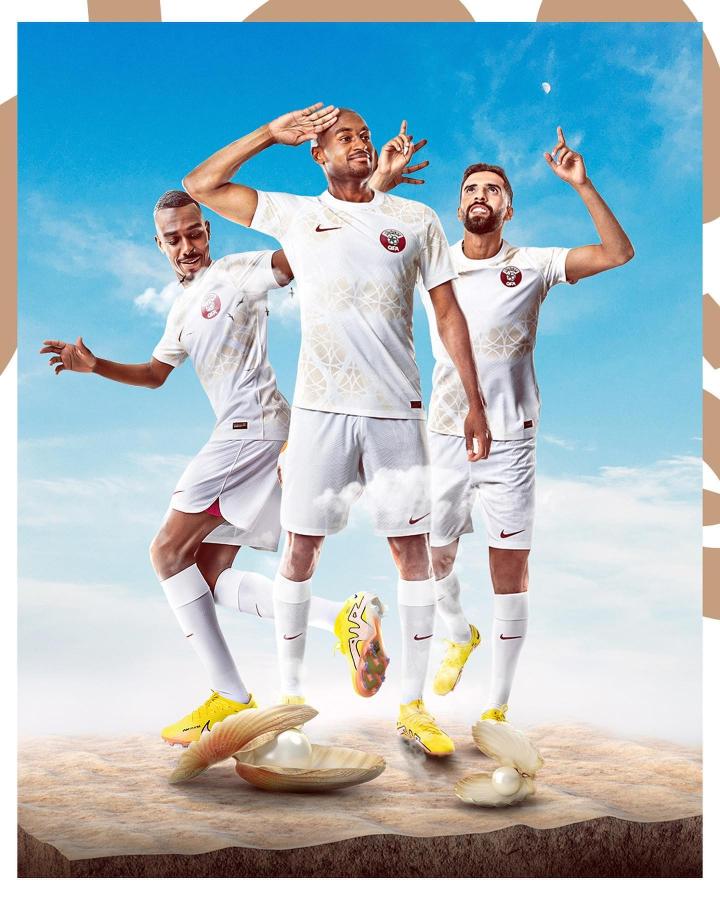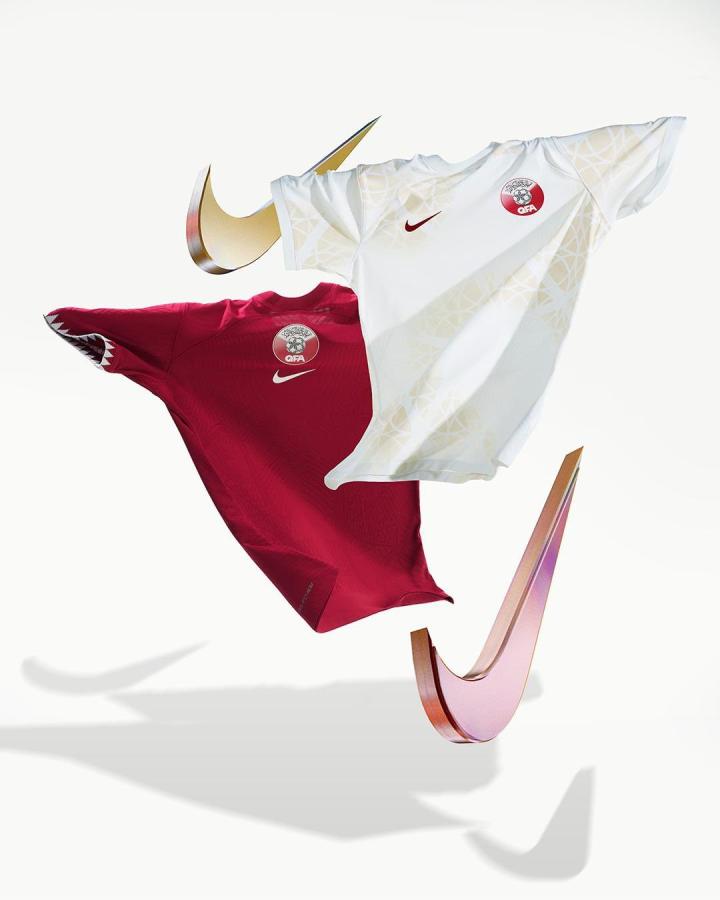 客场球衣则采用纯白配色,并搭配有浅金色的渐变花纹,寓意是卡塔尔美丽的沙滩,纯洁的白色也代表着本地传统的珍珠养殖产业。总体来看,这两件球衣维持在Nike的平均水平。