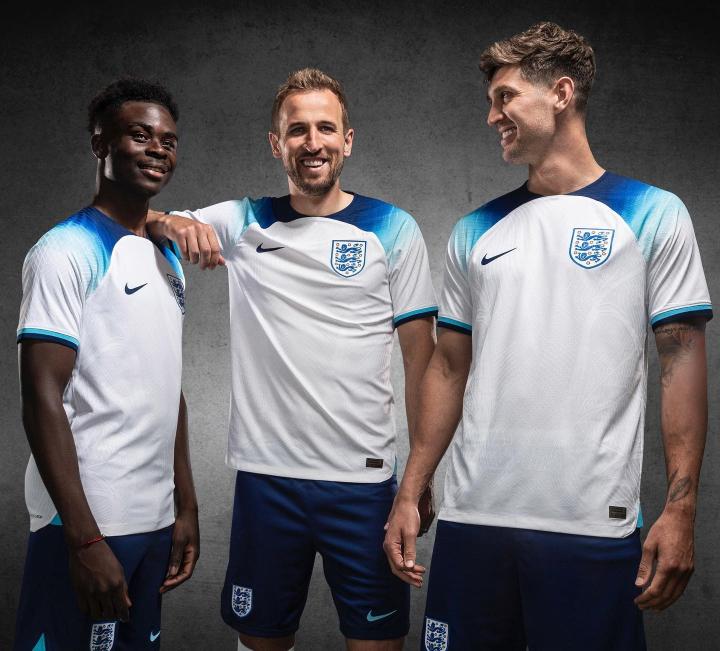 很遗憾,本届世界杯英格兰的主场球衣可能就是这么做出来的。纯白底色之外,球衣肩部的深蓝渐变染色本是一处亮点,但却被正面延伸上来的U形白色布料截掉了一大块,给人感觉略显突兀,再加上这早已在本赛季切尔西、利物浦等队身上试验过的“插肩袖”模板本身就不太讨喜,就让不少英格兰球迷对此大为不满,也让它在今年九月成功登上了FootyHeadlines的月度最差球衣榜单。