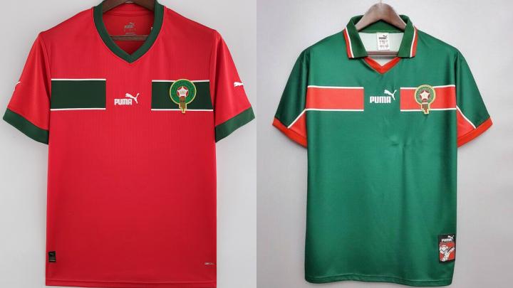 2022主场球衣(左)与1998经典球衣(右)