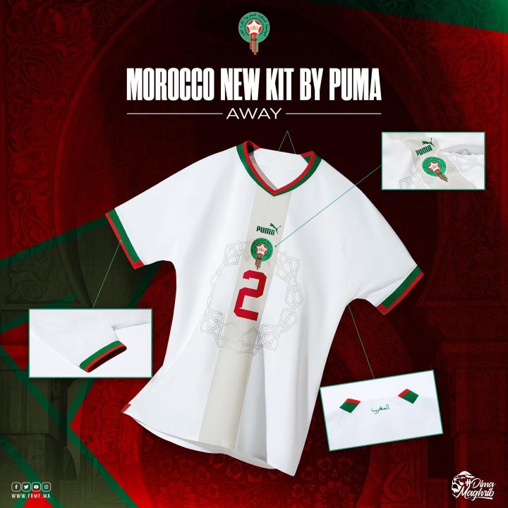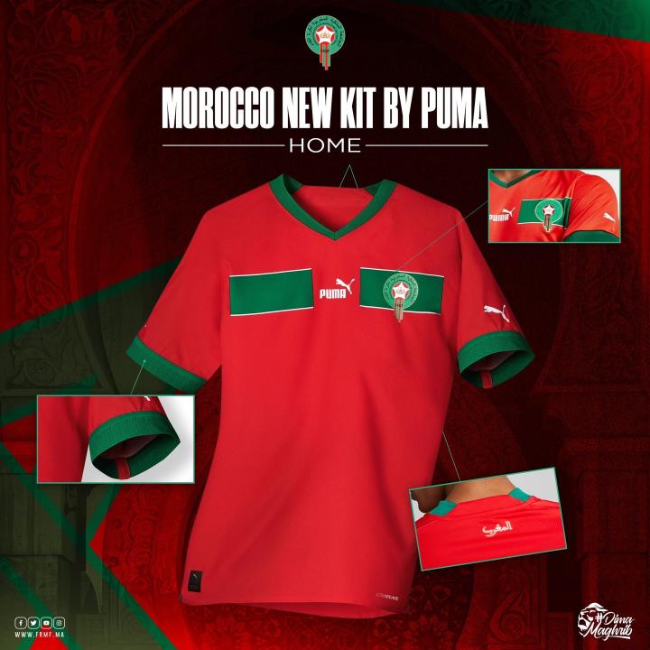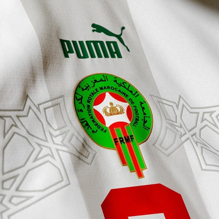于是在24年后的今天,当摩洛哥再度连续两届打进世界杯正赛,Puma十分应景地为他们准备了这件“98年经典致敬版”主场球衣。但也不是完全的复刻:曾经绿色的主场球衣变成了近年来的红色,胸前的横线条纹则与多年前的设计如出一辙,细节上没有沿用复古的立领设计,胸前的条纹也没有像原版一样延伸到袖子上。总体来看,尽管在观感上有点平平无奇,但也寄托着一种不言而喻的美好愿景。