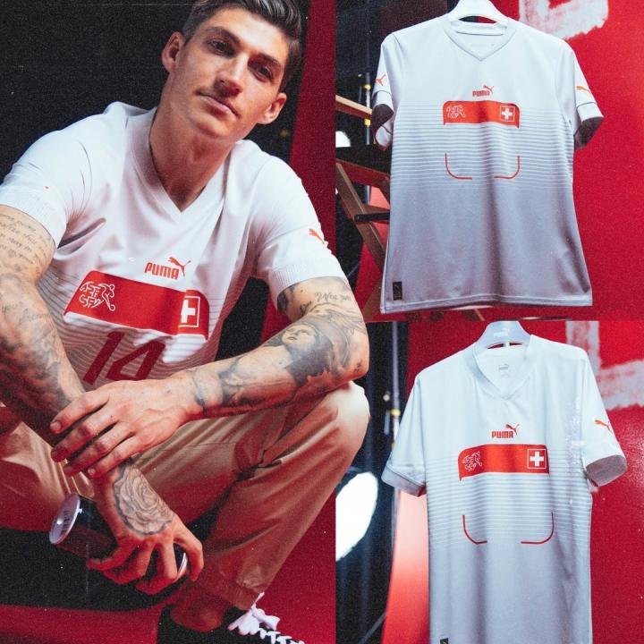 瑞士队今年的球衣也采用了红与白两种配色,队徽与国旗分居两侧一同印在球衣之上是他们多年来的传统,赞助商Puma的logo也就自然而然移动到了胸口中央。球衣锁骨位置上有着装饰性的白色条纹,可能会让人想到拜仁今年的主场球衣,由粗到细的设计则会给人一种延伸感。