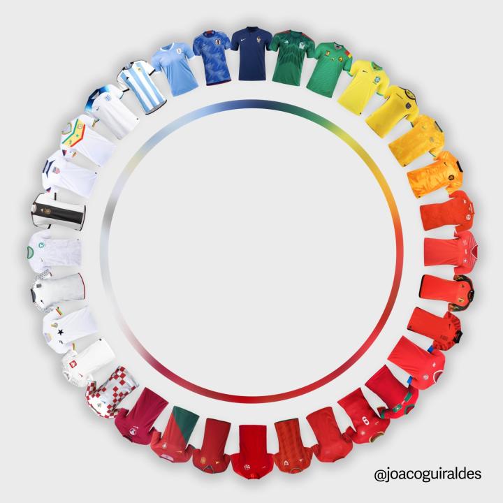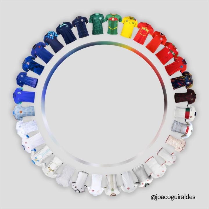 唯笑的猫专栏如果说,世界杯是四年一度最大的足球盛宴,那么球员身上的球衣就是这场盛宴中各式各样的华丽装饰。32支参赛队伍,近70件各有特色的球衣,若把它们按照主客场颜色依次排开,呈现我们眼前的将是两轮炫丽的光谱,最能代表你心中情感的,又是其中哪一抹颜色呢?