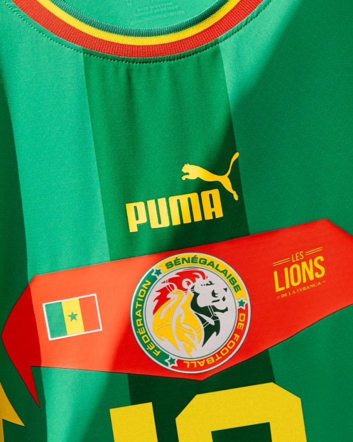 相比之下,客场的绿色可能是塞内加尔更具有代表性的颜色,不过今年,它却在Puma手中变成了一件标准的模板化球衣,独特的狮子头队徽、国旗与塞内加尔的绰号“LIONS”齐聚于中部的“对话框”上方,此外并无太多亮眼的设计,尽管不算难看,但也多少有点令人失望。