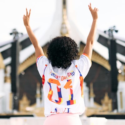 其实,这件球衣是Adidas与比利时当地著名电音音乐节“Tomorrowland(明日世界)”的联名合作款,而如此花哨的设计语言也是出自音乐节今年的主题——LOVE。可以看到,球衣颈部印有大写的彩色LOVE字样与音乐节logo(球员版与球迷版的位置并不相同),连胸前的比利时队徽也变成了音乐节的主题配色。