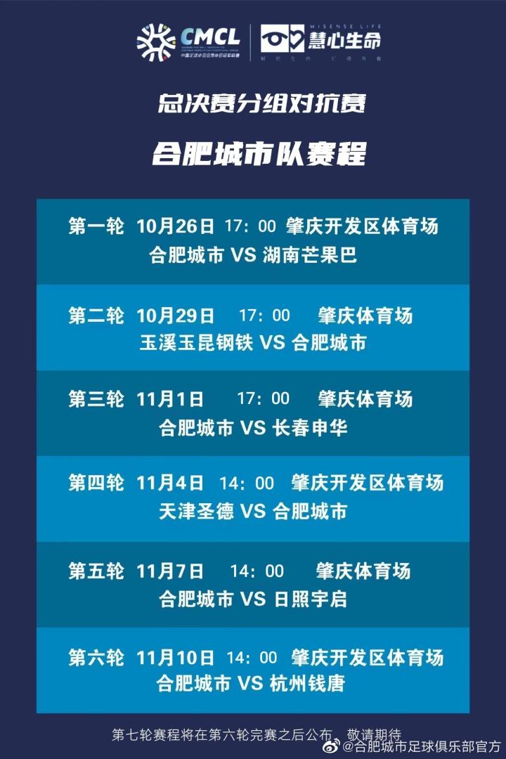 目前合肥城市正在肇庆备战中冠总决赛,在前天进行的一场热身赛中,凭借王博君和阎格的进球,球队2:2战平了总决赛参赛球队重庆铜梁龙。合肥城市在中冠总决赛的首场定在26日,具体开赛时间有所调整,改在了17:00开赛,欢迎各位球迷届时关注本场比赛的直播,为合肥城市加油助威。