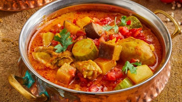 由于缺少绿色蔬菜,牛羊鸡鱼肉可以说是卡塔尔传统餐桌上的主基调。这道名叫Saloona的烩菜就是非常典型的卡塔尔主菜之一。番茄打底,辅以洋葱、彩椒以及胡椒、肉桂、姜黄、藏红花、茴香等来自波斯和南亚次大陆的香料腌入大块肉当中,如果是来自印度的厨师可能还会加入咖喱增加味觉的层次。没有料酒去腥,浓墨重彩的香料就是卡塔尔人餐桌主菜的主旋律。而通常来说,这道烩菜会配一些米饭平衡咸度和碳水。而说到典型的米饭做法,我们就不得不提到——