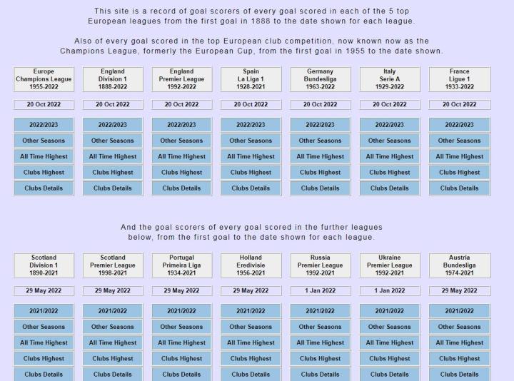 其次,还有个叫free-elements的网站有统计各大联赛的历史进球数据,但是这个网站没有列出球员出场数,并且很多老英甲球员进球数据都有错误。