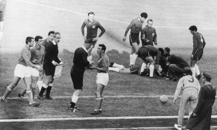 上半场即将结束之际,智利的托罗将意大利队长莫拉放倒在地,双方直接成冲突改为群殴,期间为了将两队分开,主裁阿斯顿也多次被误伤。最终上半时比赛进行了57分钟之后,主裁才吹响结束哨音。同样创造了世界杯的纪录。