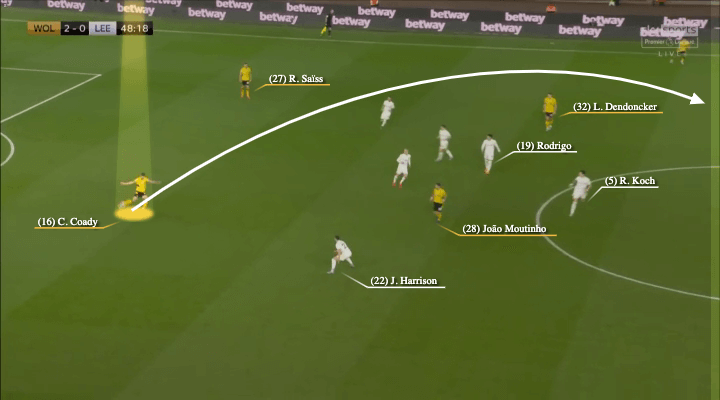 “狼队时期的康纳-科迪是个典型的例子。他的核心竞争力在于比赛阅读能力,沟通能力以及引导球队行动的能力。他是三中卫体系里的指挥官。从技战术角度来说,他卓越的长短传能力使他成为了球队当之无愧的核心。”